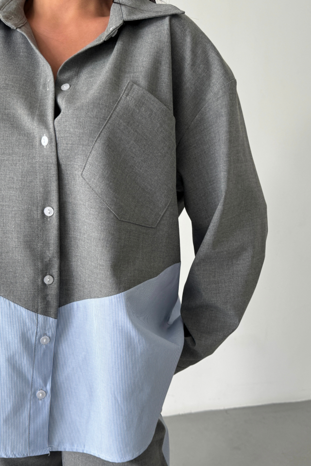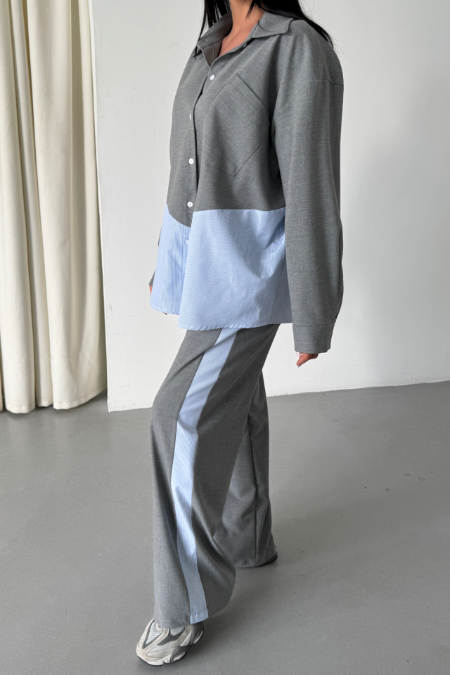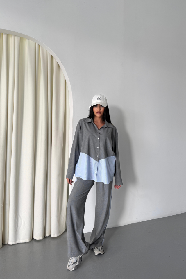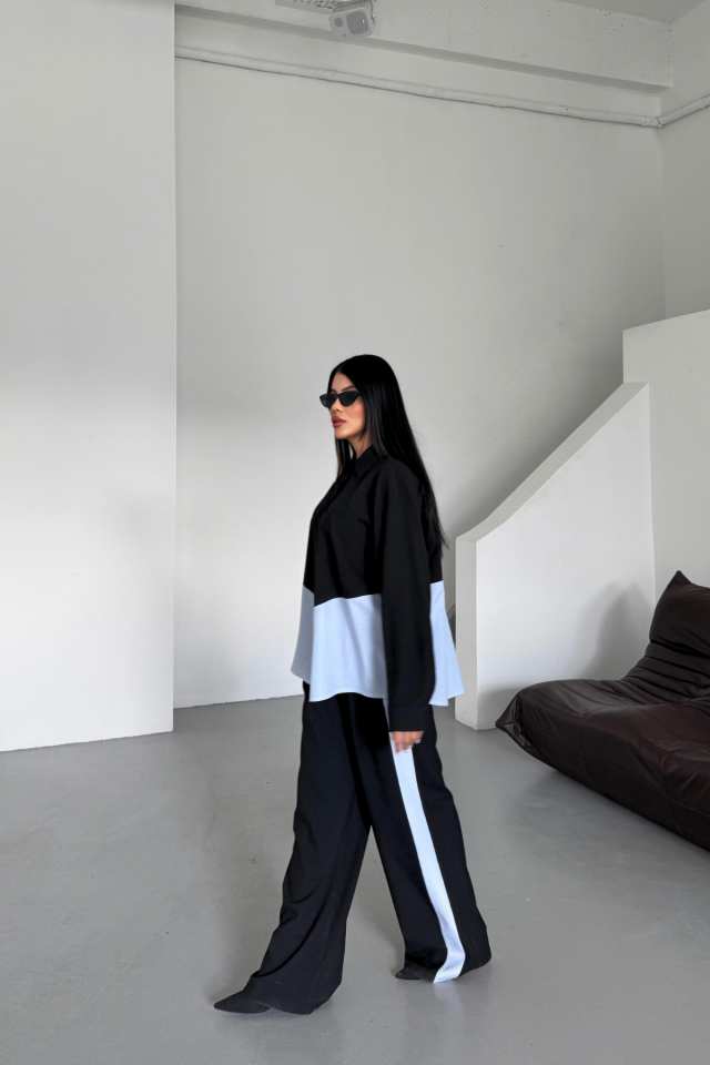 POLYVİSKON - POPLİN PARÇALI GÖMLEK PANTOLON TAKIM - Siyah