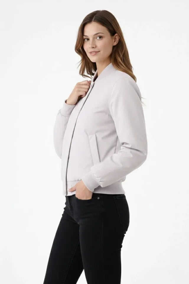 Premium Bomber Ceket Çıtçıt Kapamalı, Ribana Manşetli, Astarlı, Regular Fit Mont - Beyaz