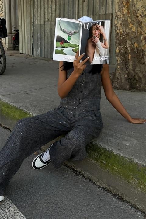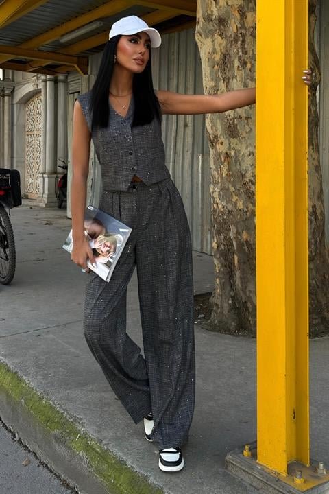 Pul Payetli Ve Simli Yelekli Takım 10088