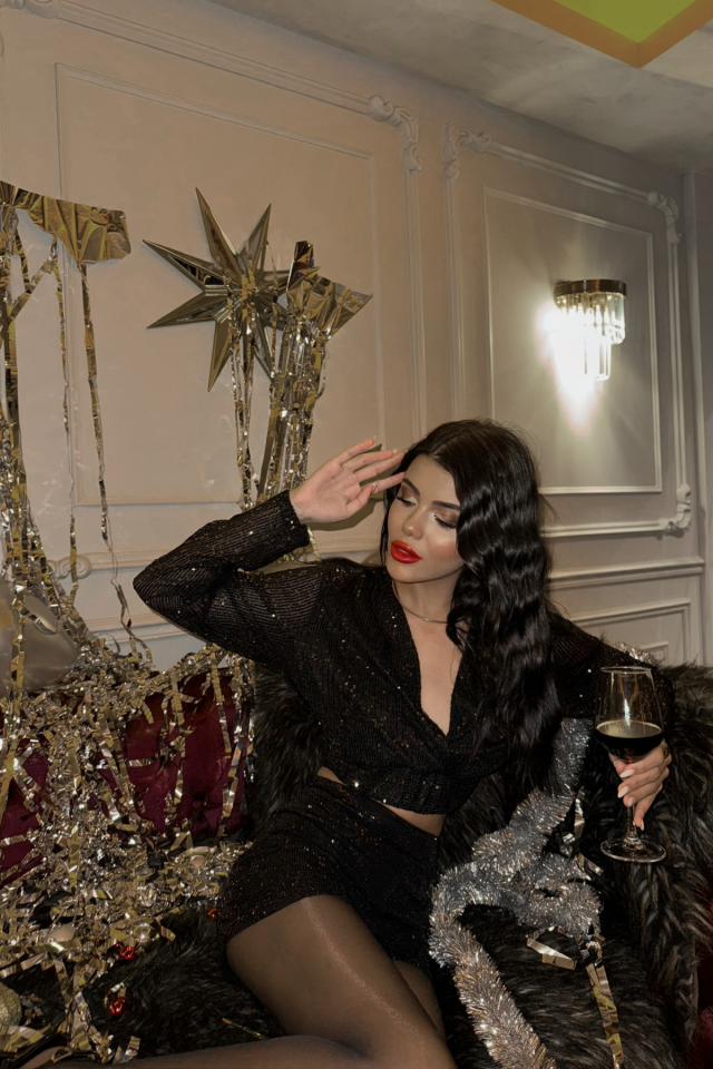 PULLU CROP KRUVAZE BLUZ - Siyah