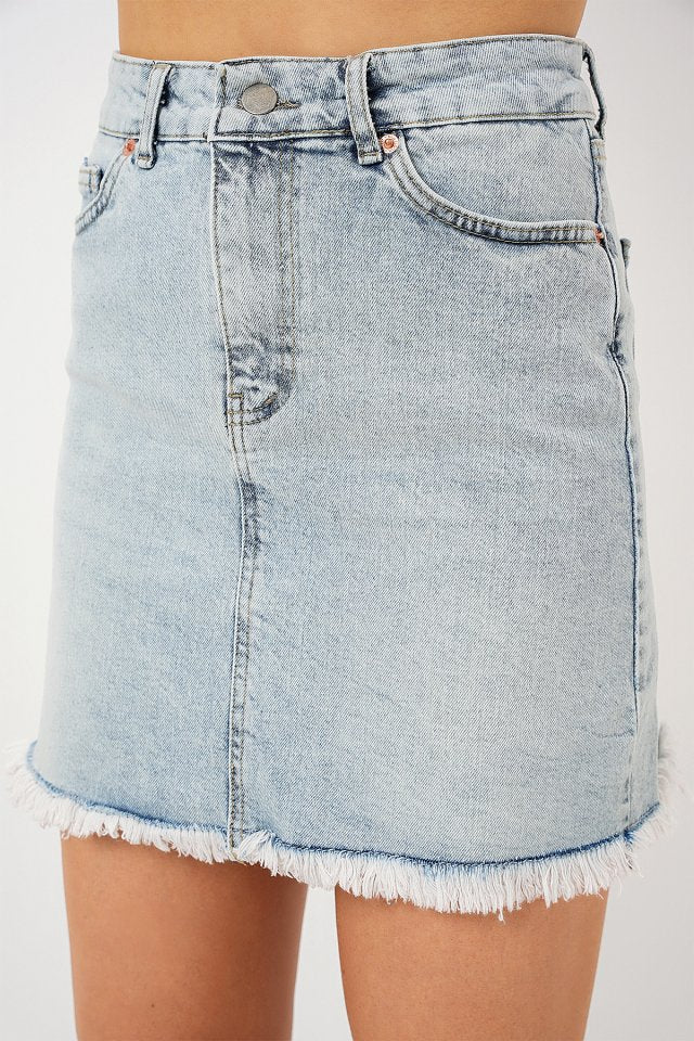 Püsküllü Mini Kot Etek 8051 - Mavi