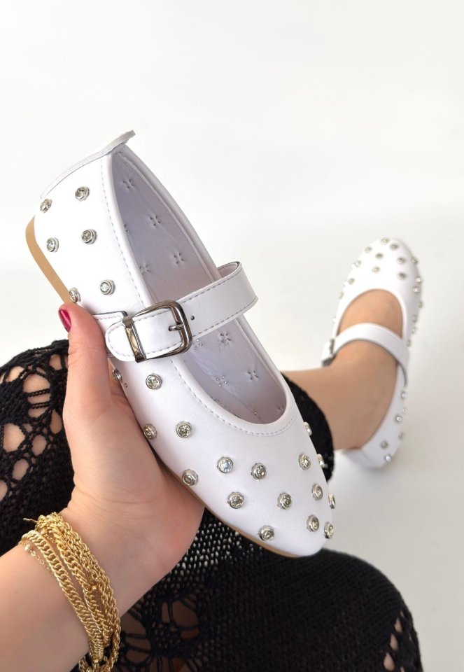Ritta Beyaz Cilt Kemerli Babet Ayakkabı