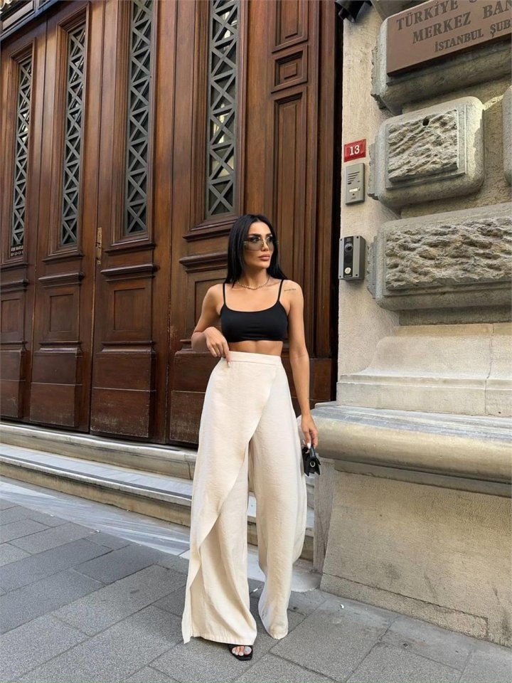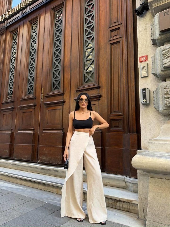ŞALVAR KAPAK BAĞLAMALI PANTOLON - Bej