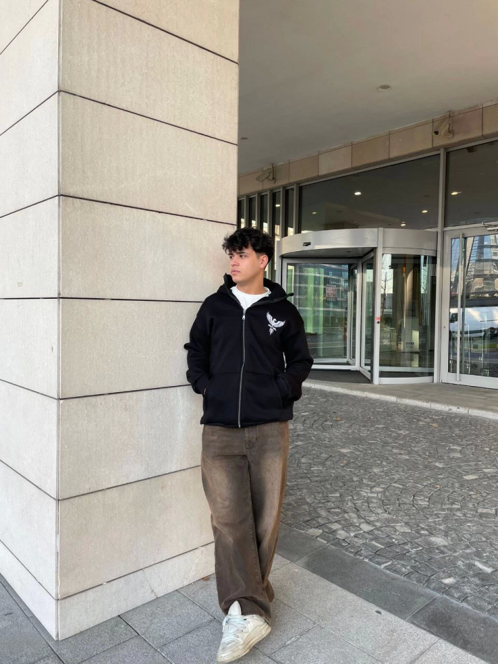 Samuray Kapşonlu ZIP Fermuarlı Kapşonlu SweatShirt - Siyah