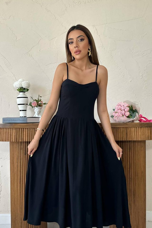 Sarı Göğüs Kuplu Uzun Büzgülü Elbise