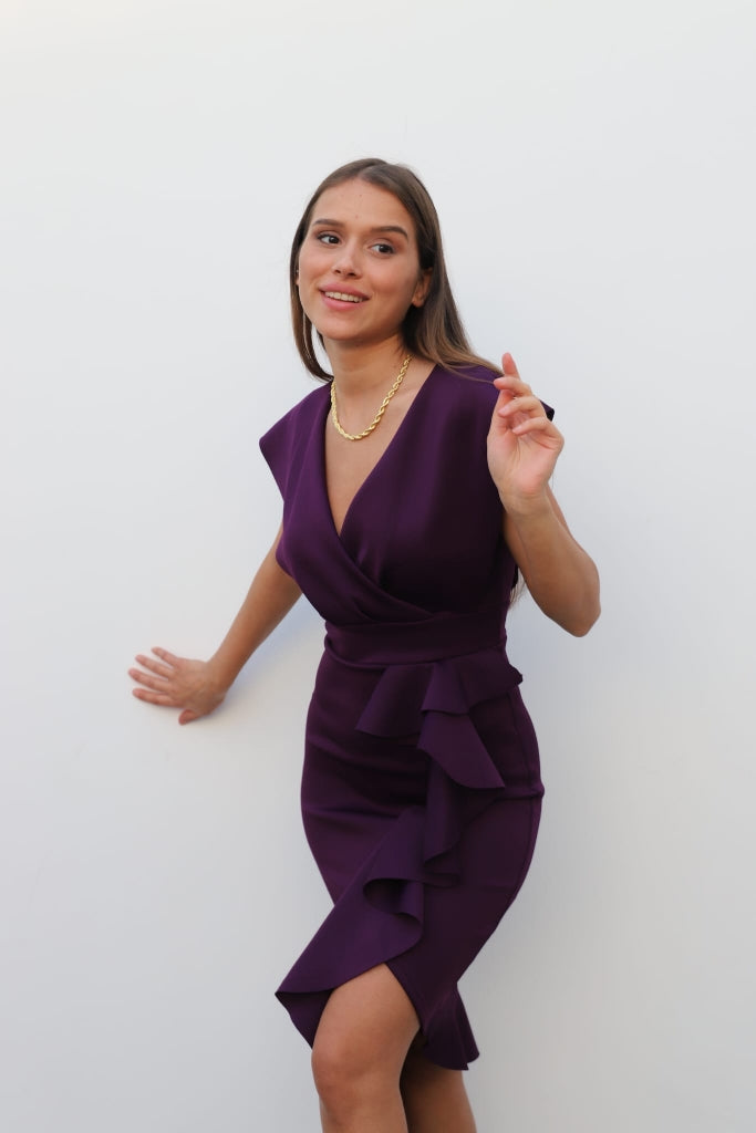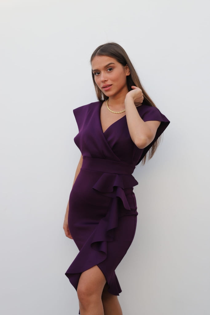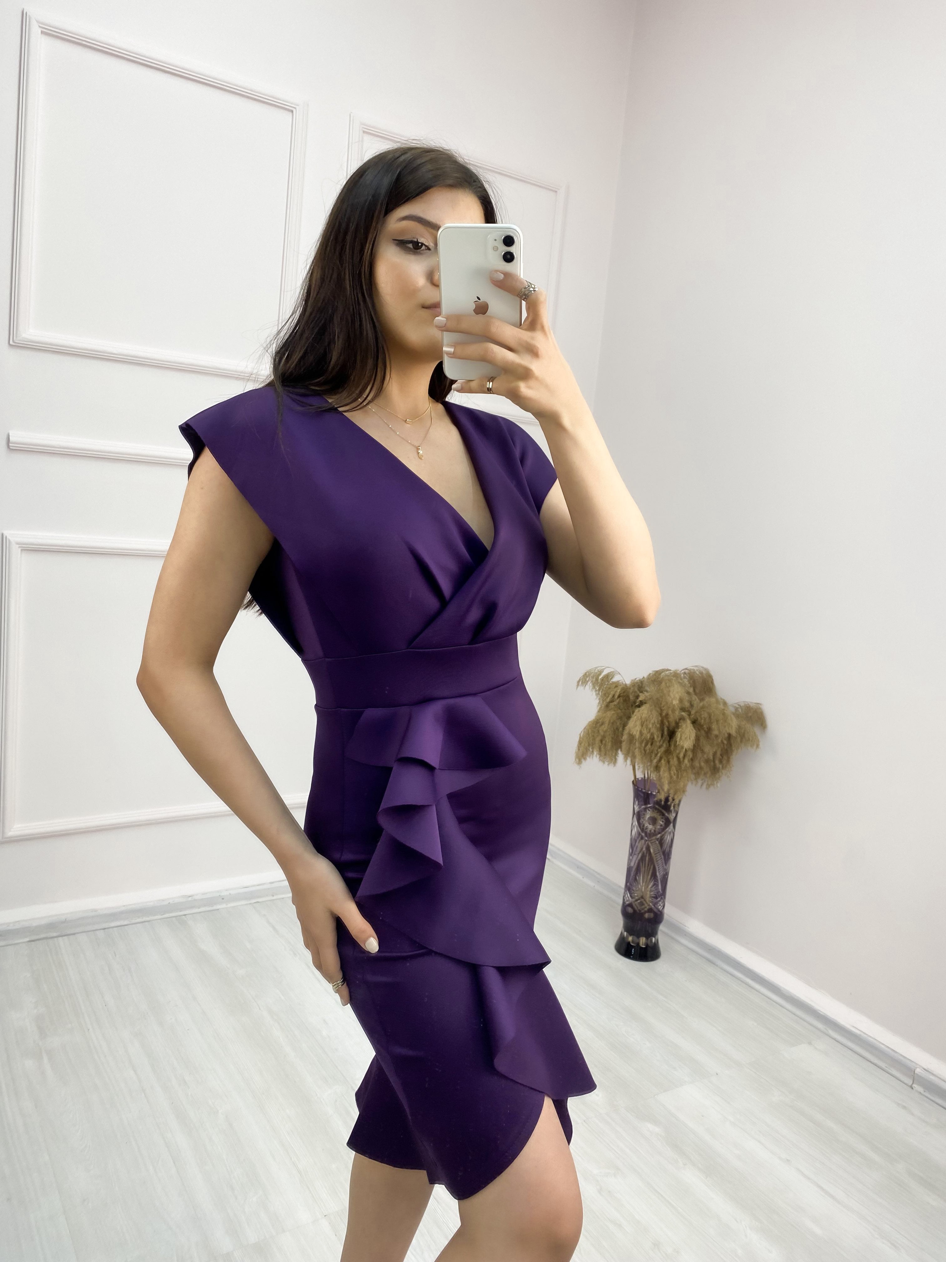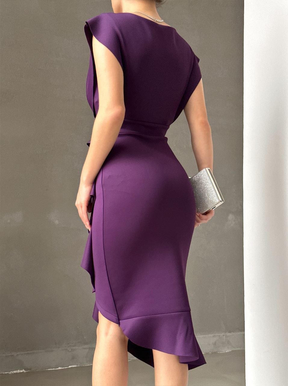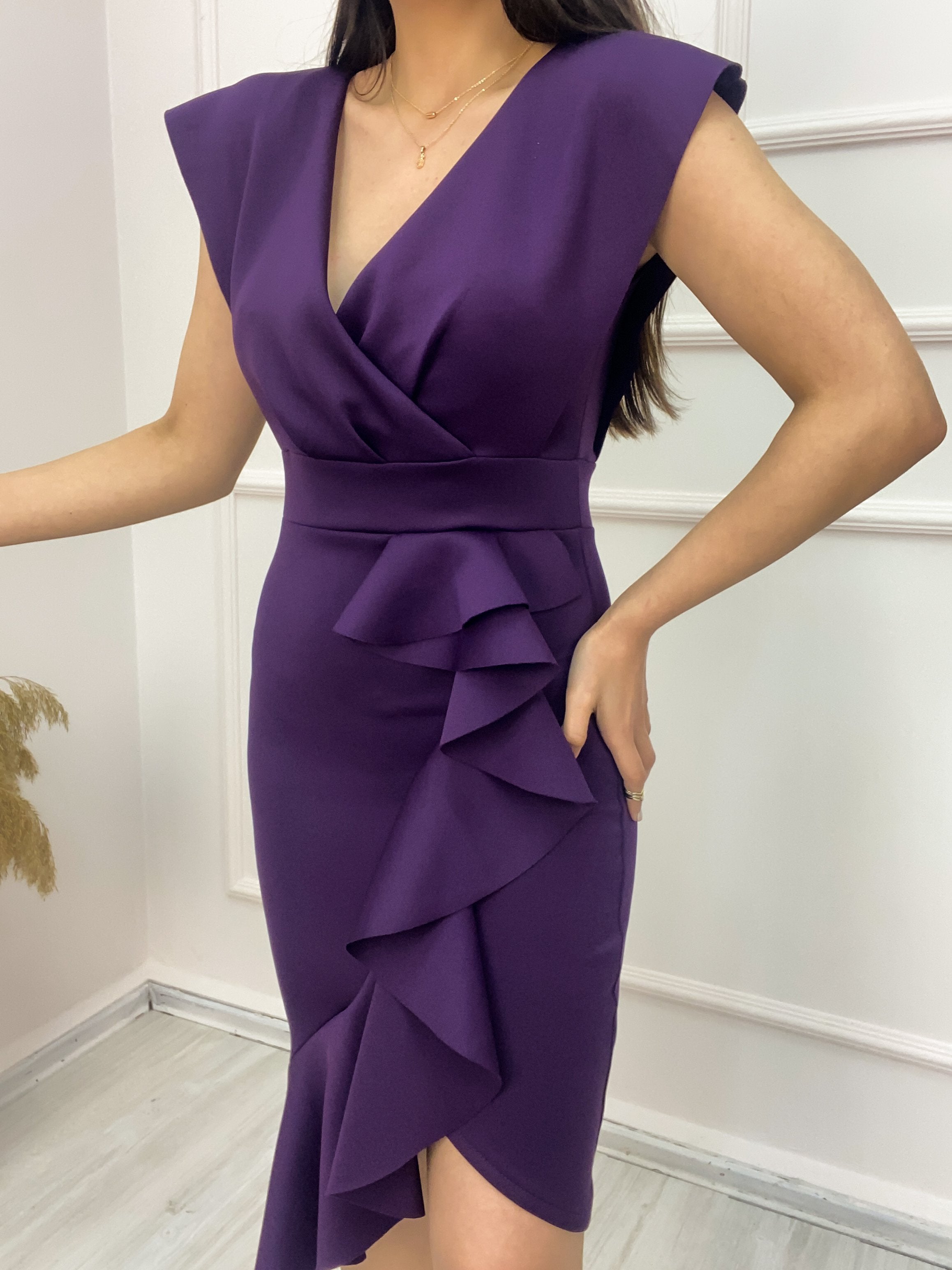 Scuba Kumaş Önü Fırfırlı Midi Boy Elbise