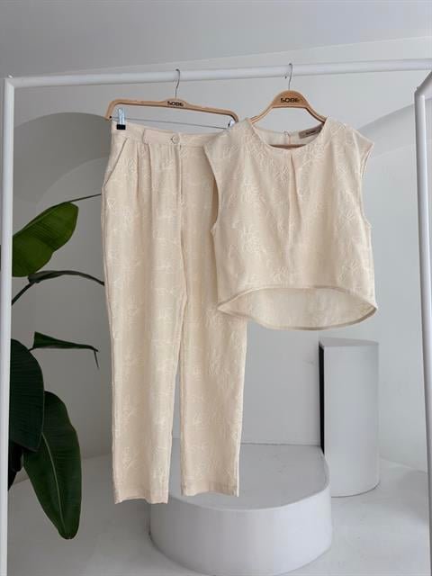 Shalina Süzüne Nakışlı Crop Takım 9796-08