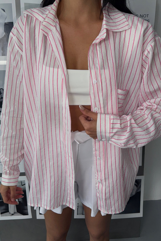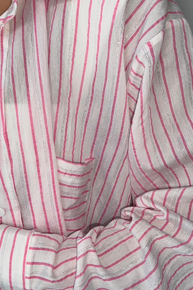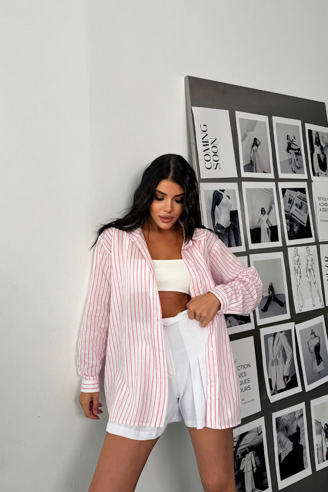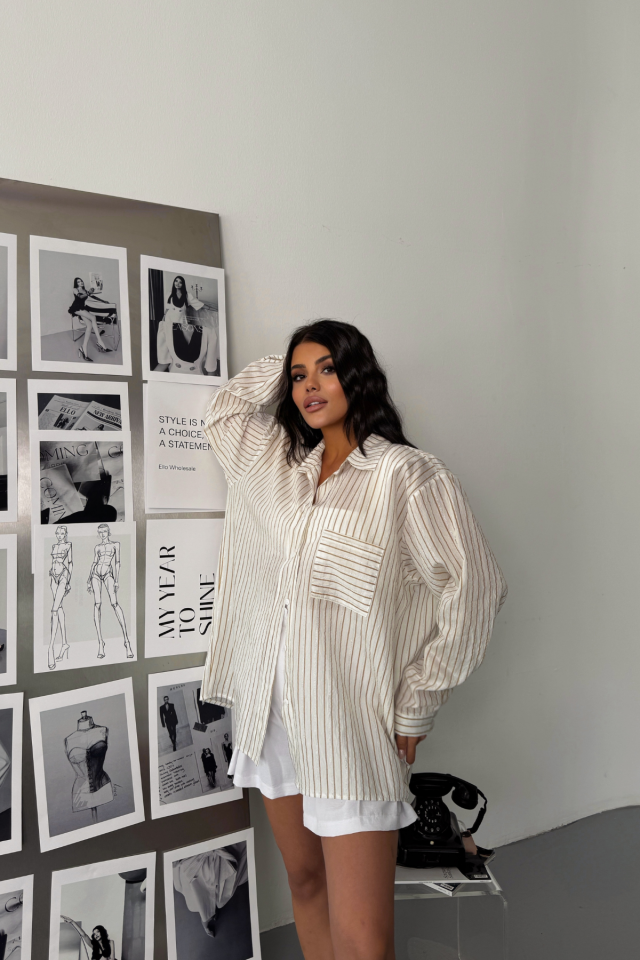 SİMLİ ÇİZGİLİ VUAL GÖMLEK - Bej