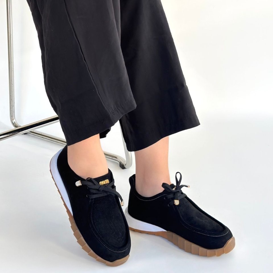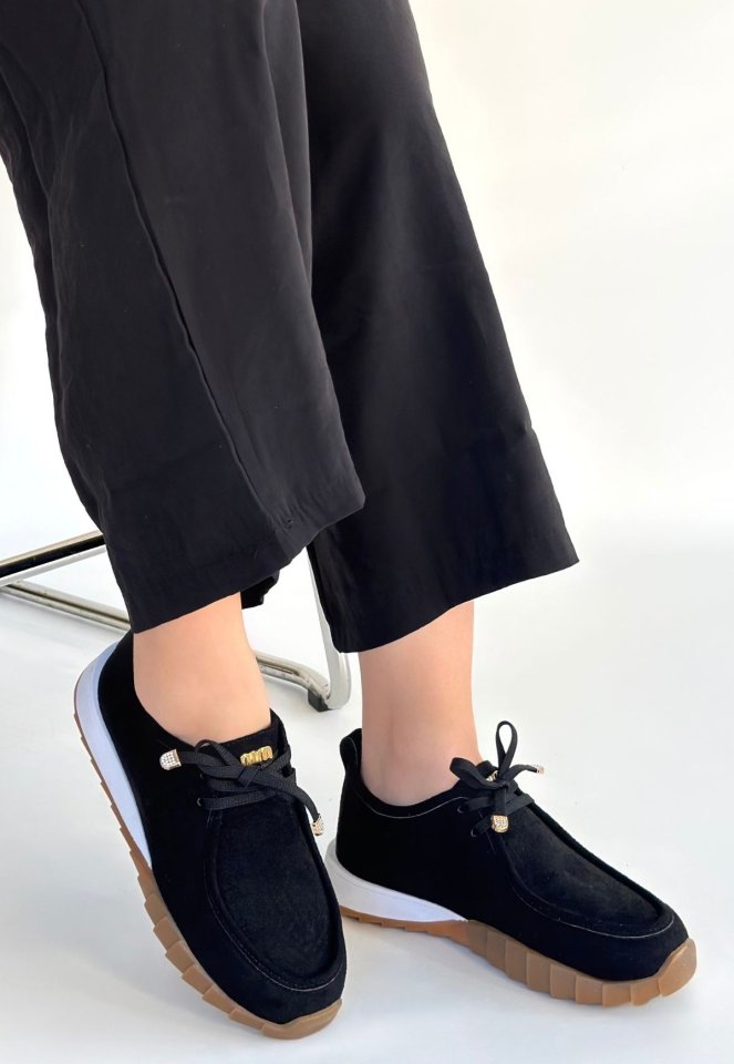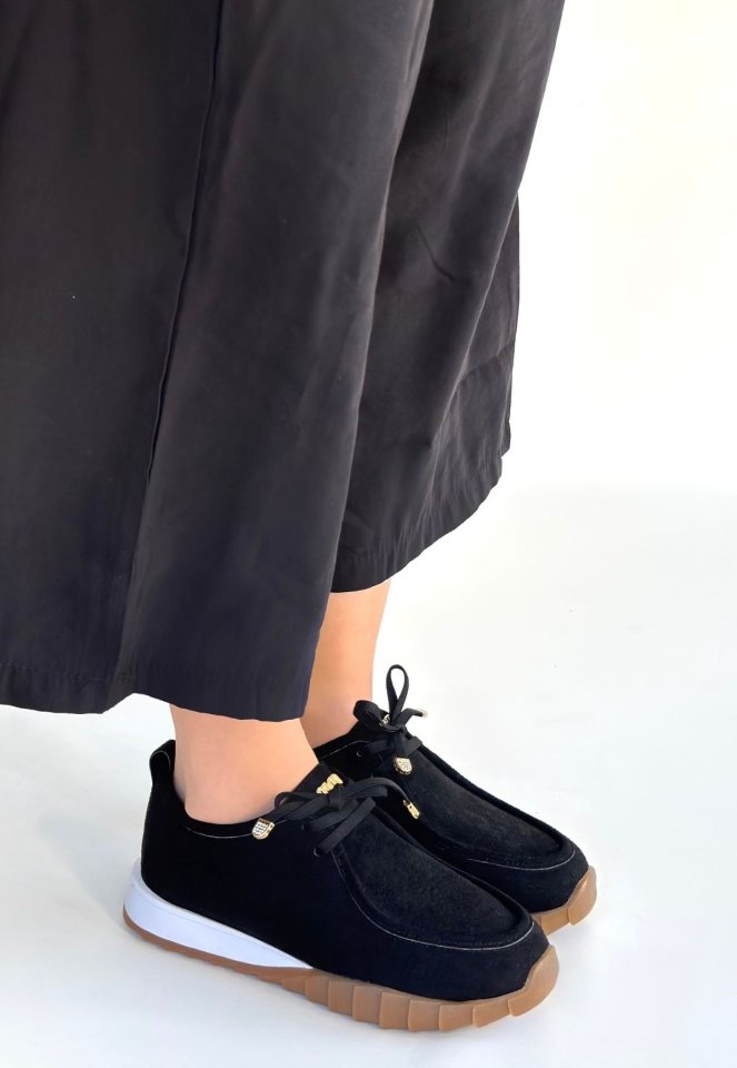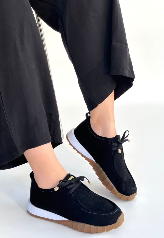 Sier Siyah Süet Bağcıklı Spor Ayakkabı