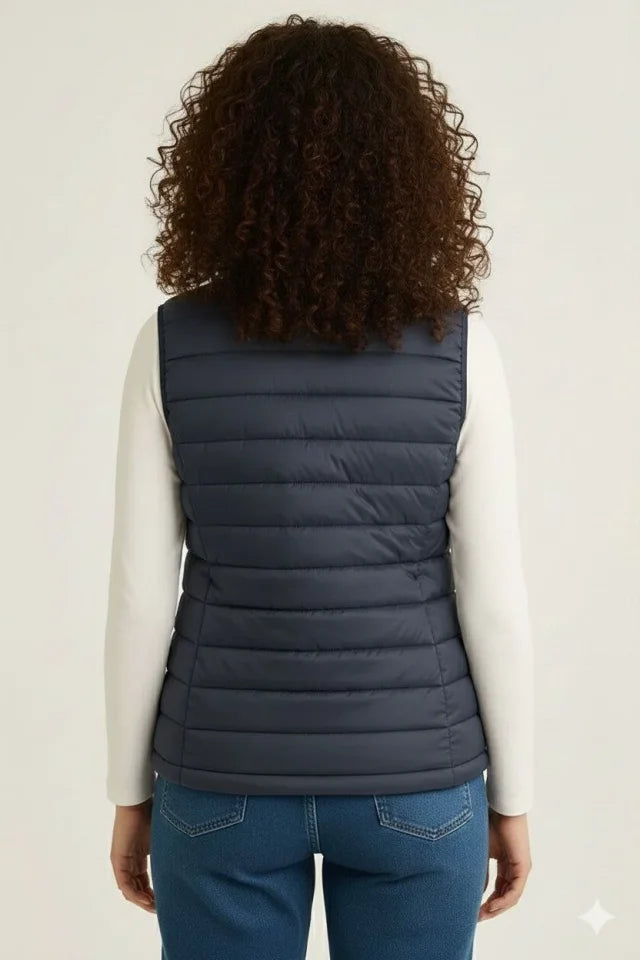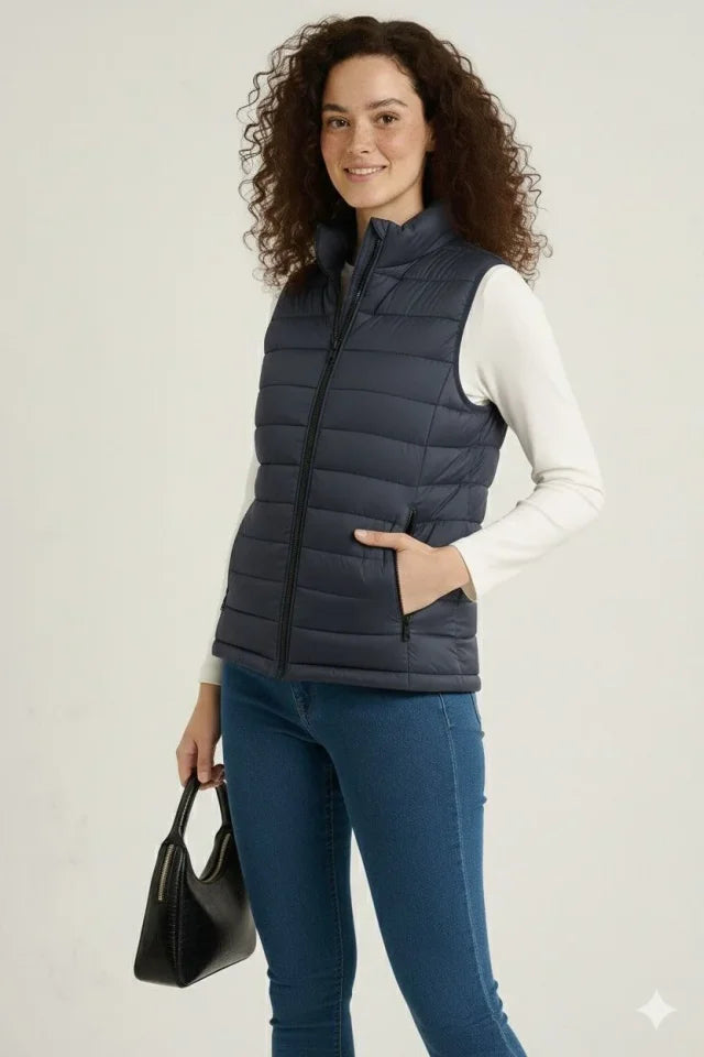 Şişme Fermuarlı Yelek Su Itici Kapitone Astarlı Kumaş Cepli Hafif Kışlık Spor Rahat Kalıp - Lacivert