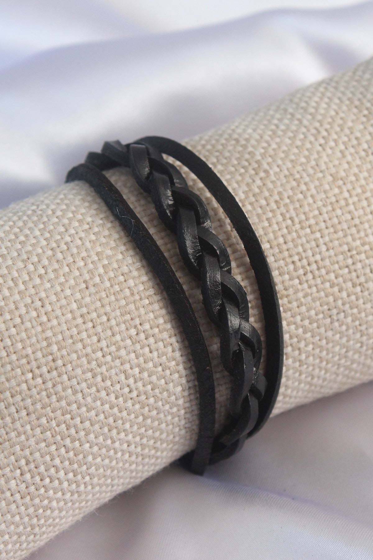 Siyah Ördü Model Deri Erkek Bileklik