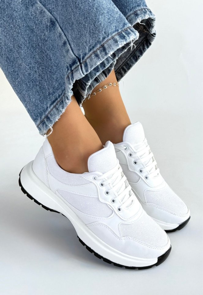 Slar Beyaz Cilt Bağcıklı Spor Ayakkabı