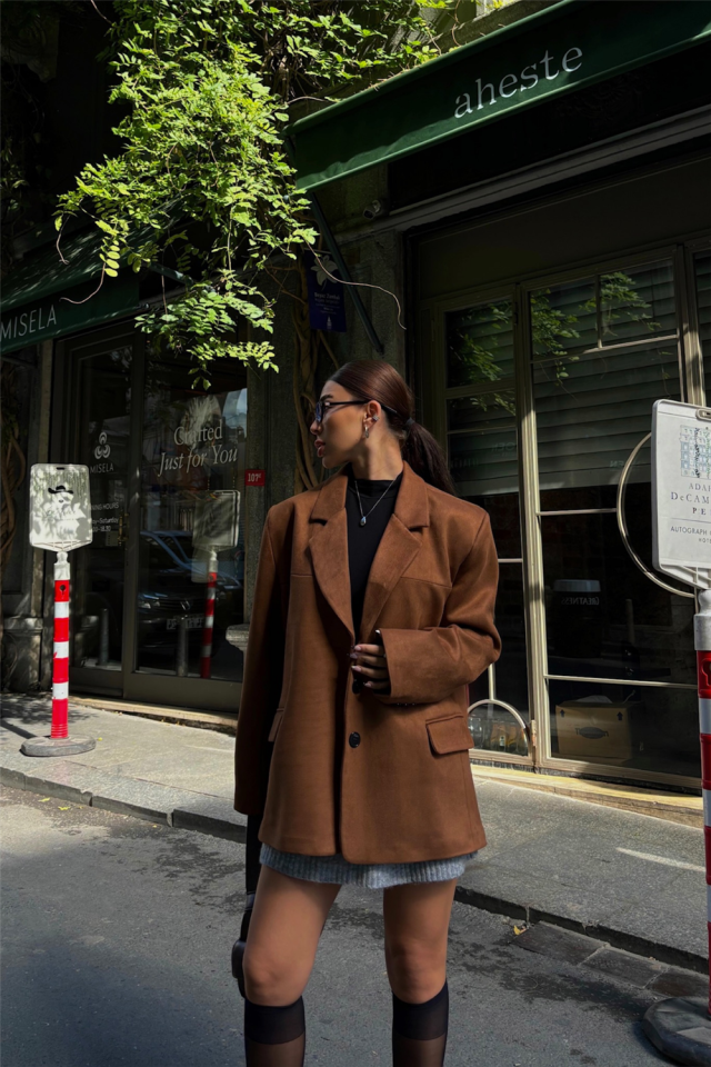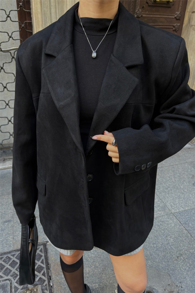 SÜET BLAZER CEKET 3 DÜĞME - Siyah