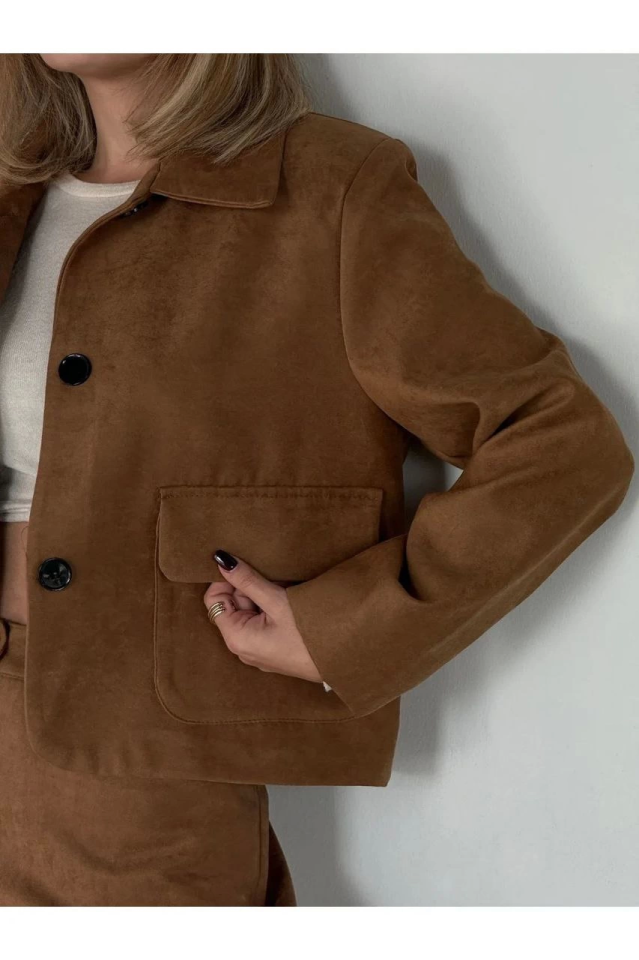 Süet Ceket Palazzo Pantolon İkili Takım - Kahve