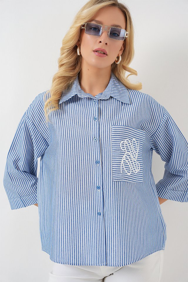 Tek Cep Nakışlı Gömlek 20328 - Pembe