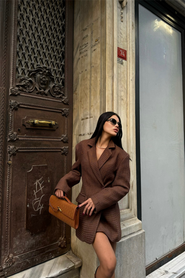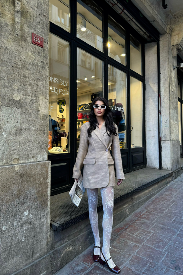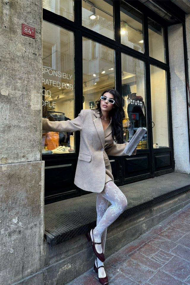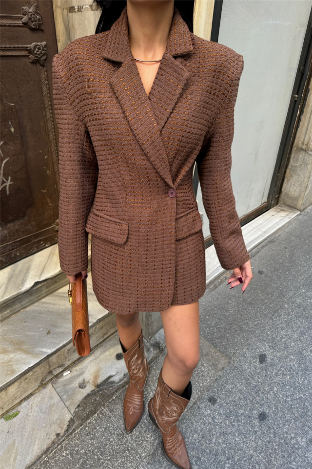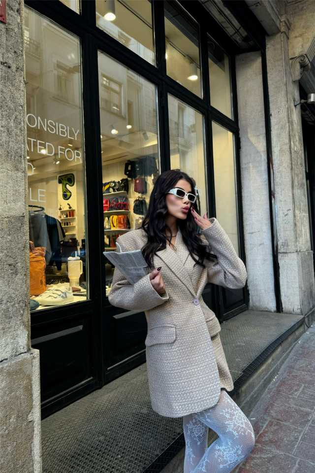 TEK DÜĞME CEKET ŞANEL KUMAŞ - Bej