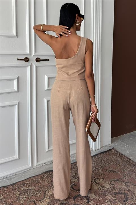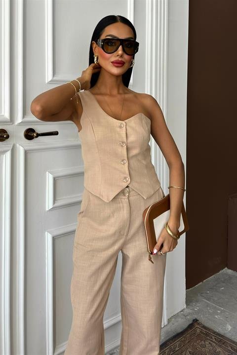 Tek Omuz Büstiyer Plazzo Pantolon Viscon Takım 10159