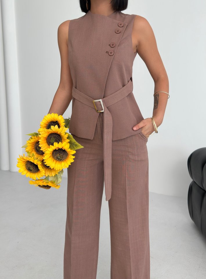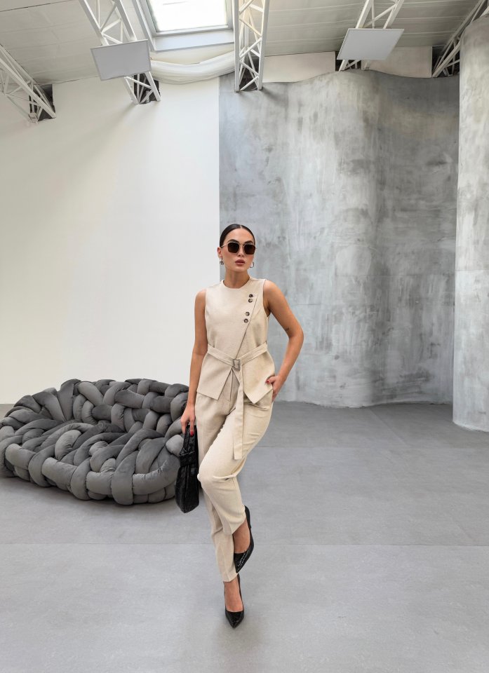 Ti̇na Asi̇metri̇k Keten Yelek Pantolon Takim