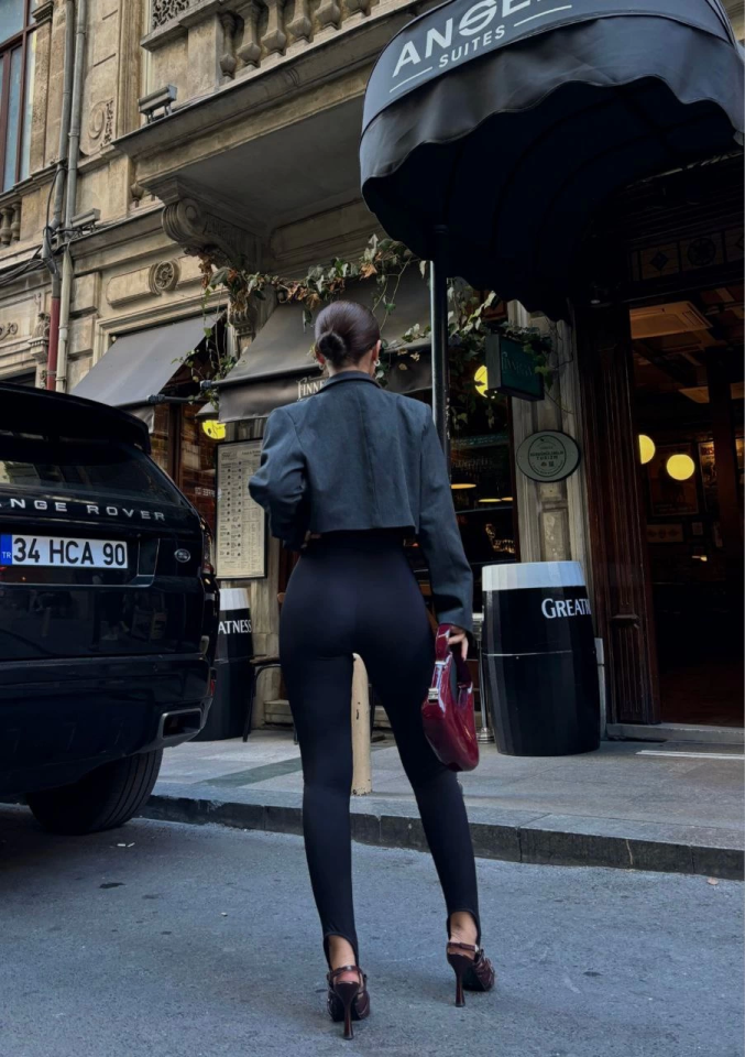 Toparlayıcı Füzo Tayt Likralı Ayak Detaylı - Siyah
