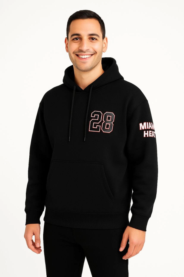 Üç İplik Kapüşonlu Ön Ve Arka Baskılı SweatShirt Hoodie - Siyah