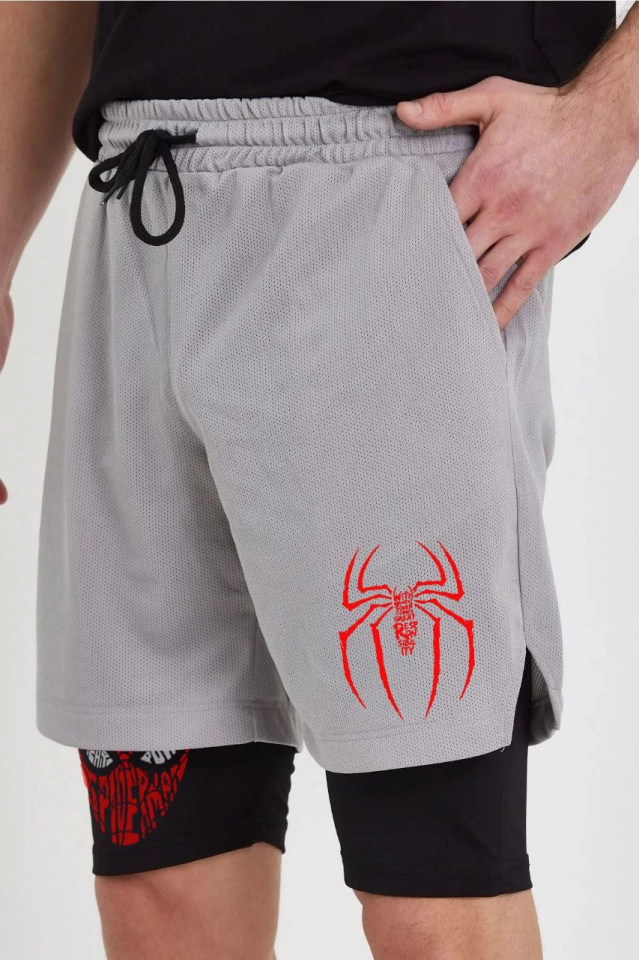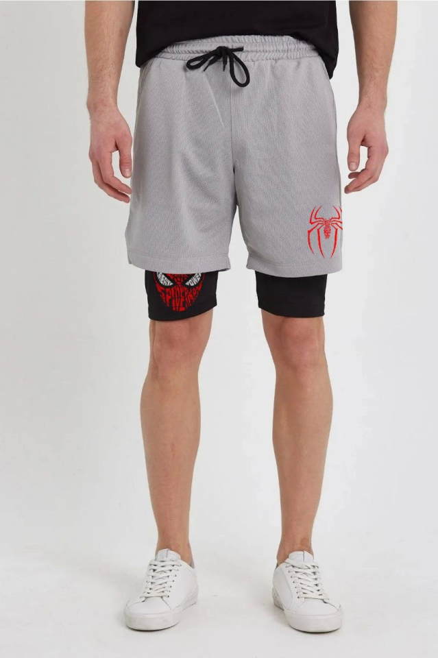 Unisex Baskılı İç Cepli Sporcu Alt Taytlı Şort - Gri