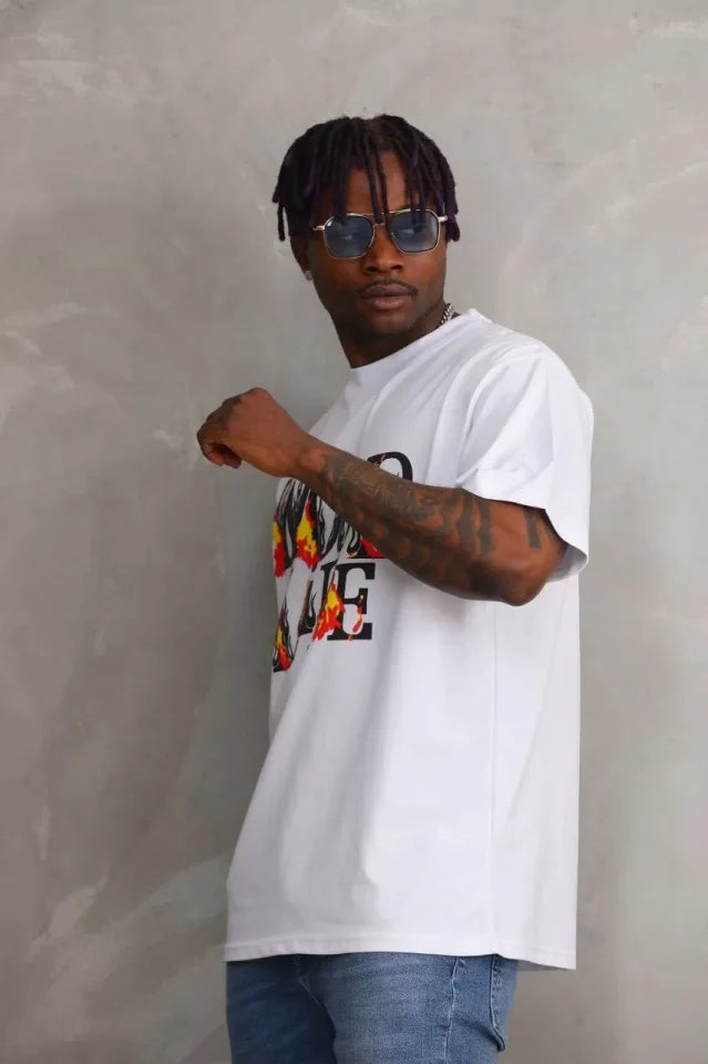 Unisex Baskılı Oversize T-Shirt - Beyaz