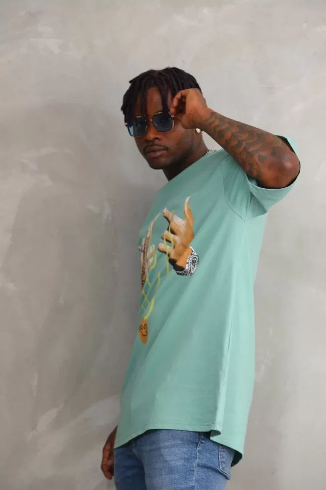Unisex Baskılı Oversize T-Shirt - Mint Yeşili