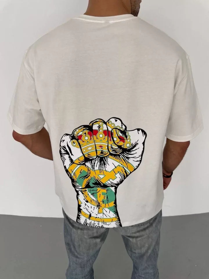 Unisex Bisiklet Yaka Baskılı Oversize T-Shirt - Beyaz