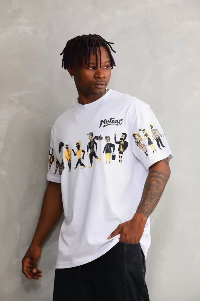 Unisex Bisiklet Yaka Baskılı Oversize T-Shirt - Beyaz