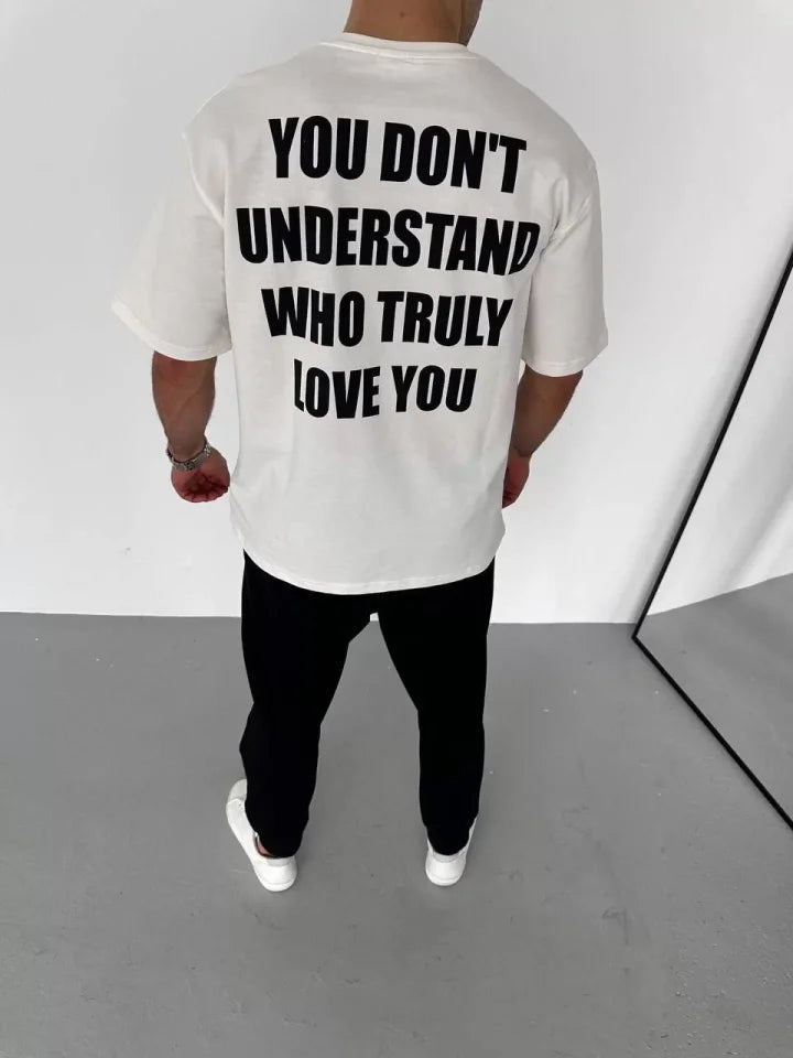 Unisex Bisiklet Yaka Baskılı Oversize T-Shirt - Beyaz