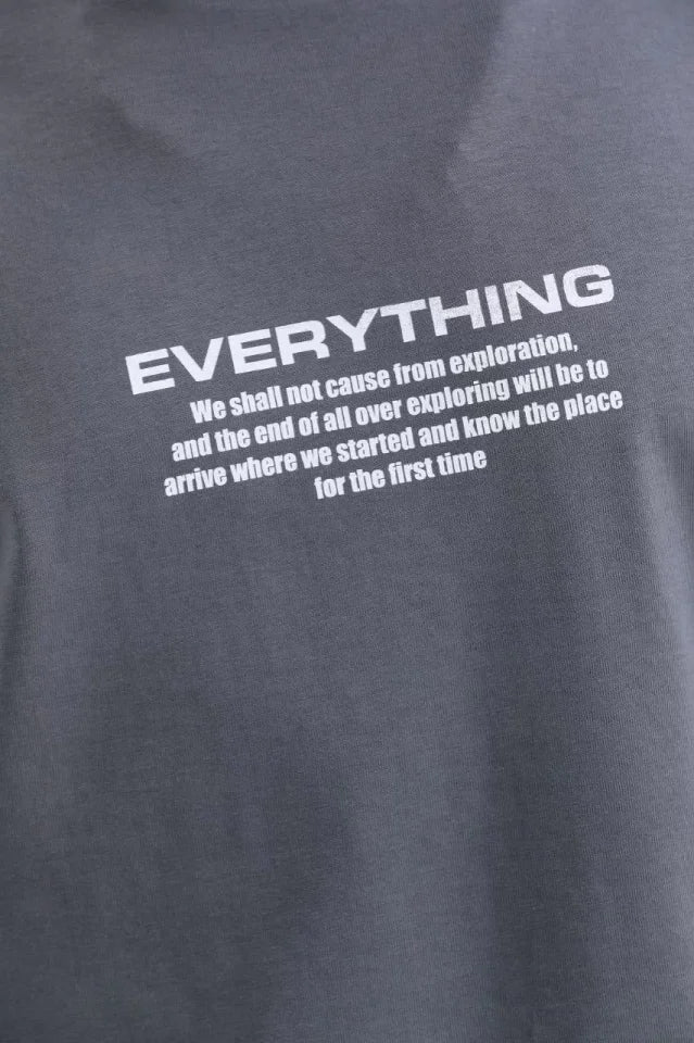 Unisex Bisiklet Yaka Baskılı Oversize T-Shirt - Gri