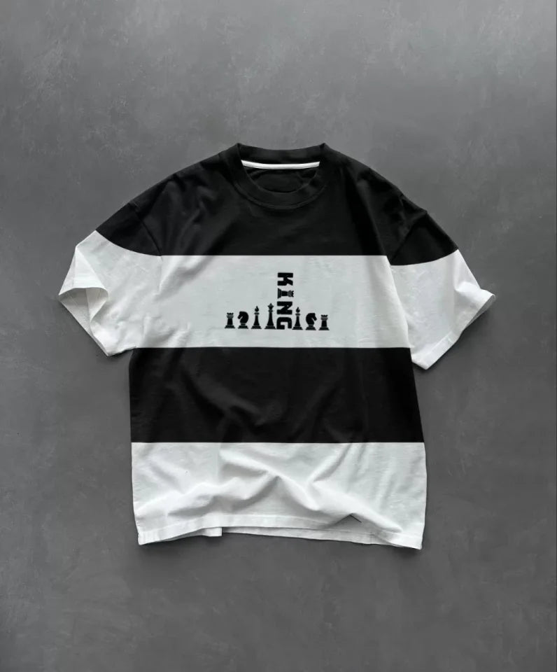 Unisex Bisiklet Yaka Baskılı Parçalı Oversize T-Shirt - Siyah