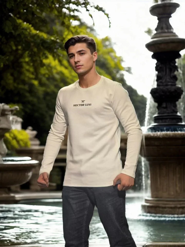 Unisex Bisiklet Yaka Uzun Kollu T-Shirt - Beyaz