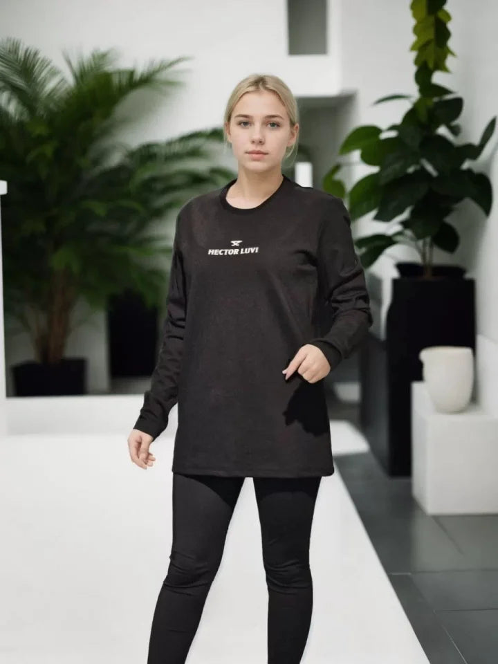 Unisex Bisiklet Yaka Uzun Kollu T-Shirt - Siyah