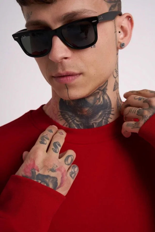 Unisex Biskilet Yaka Üç İplik SweatShirt - Kırmızı