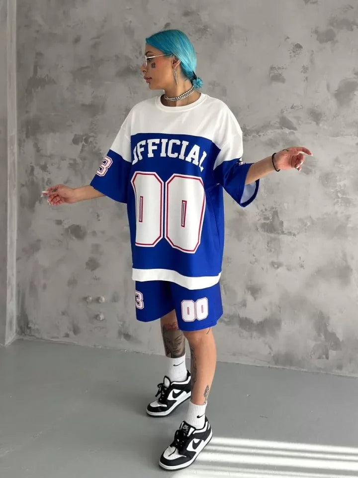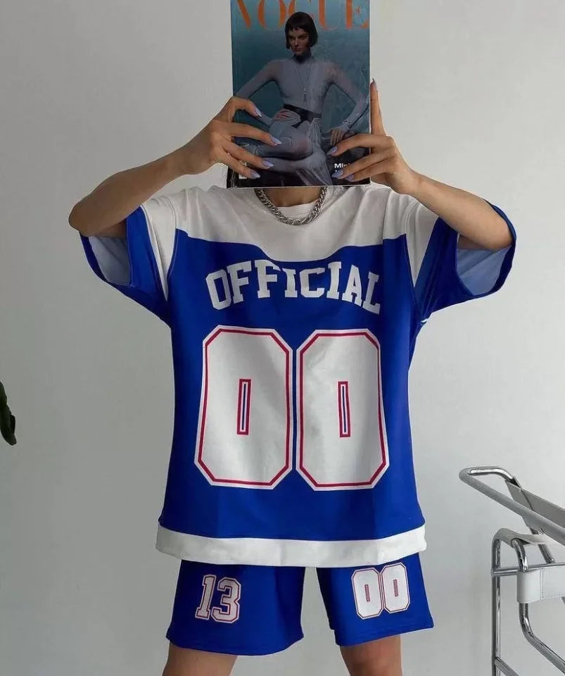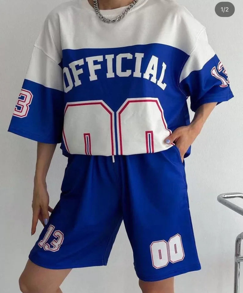 Unisex Dijital Baskılı Şortlu Takım - Mavi