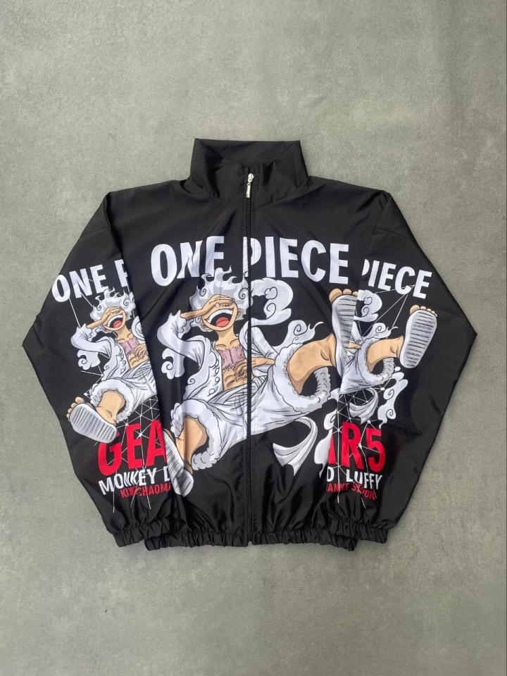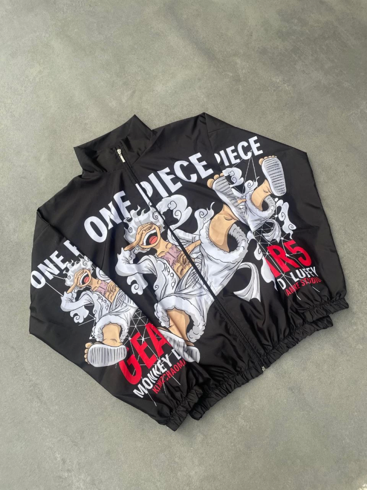 Unisex Fermuarlı Dijital Baskılı Rüzgarlik - Siyah