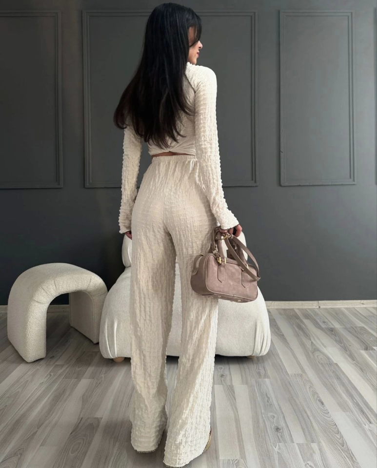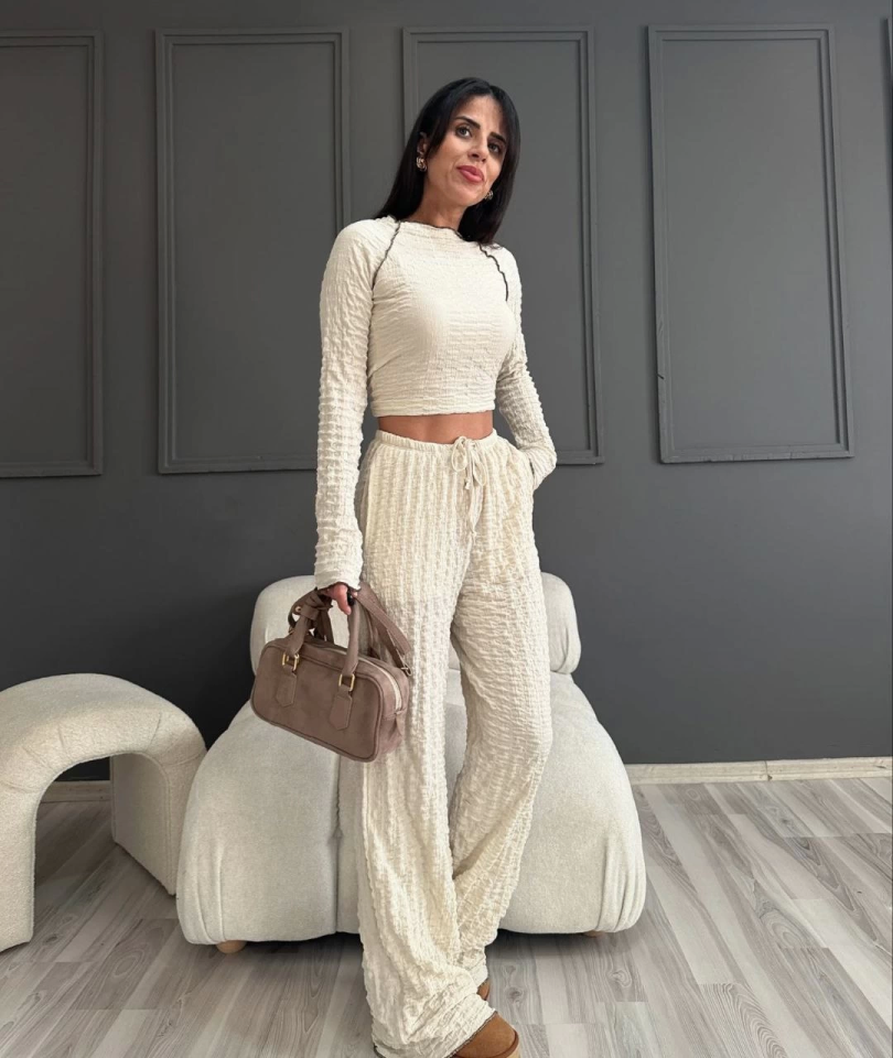 Uzun Kollu Badi Ve Pantolon İkili Takım - Bej