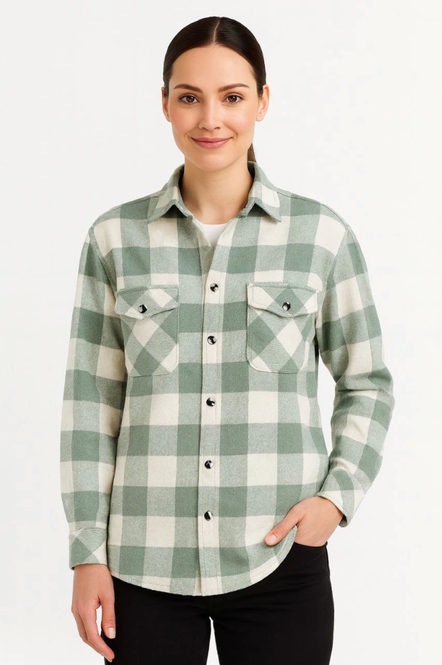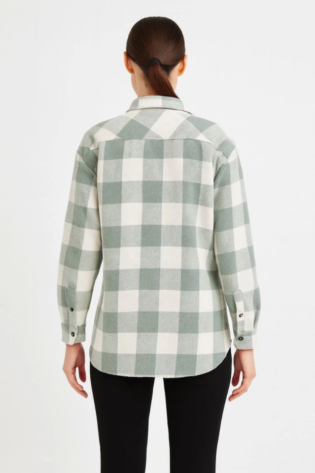 Uzun Kollu Oduncu Gömlek - Su Yeşili