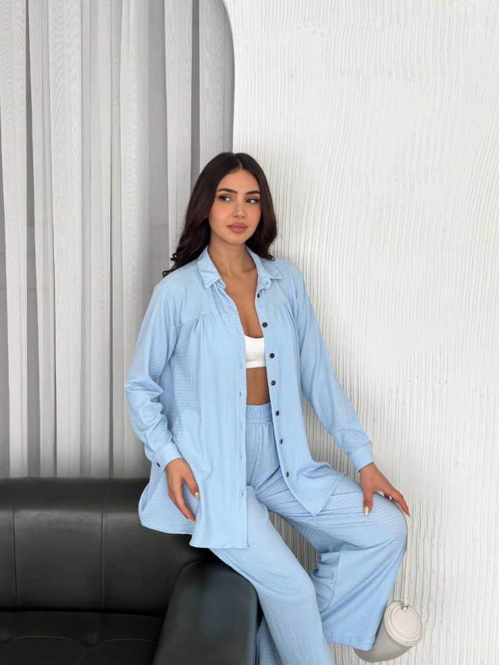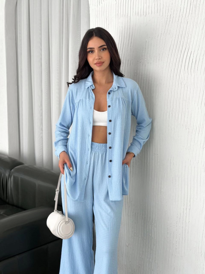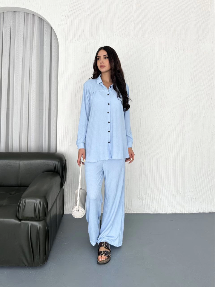 Yakalı Düğmeli Uzun Kollu Gömlek Pantolon Ikili Takım - Bebek Mavisi