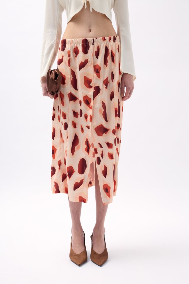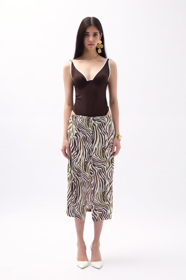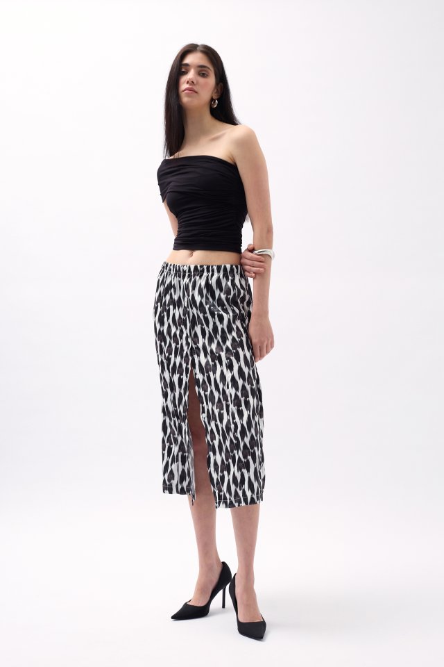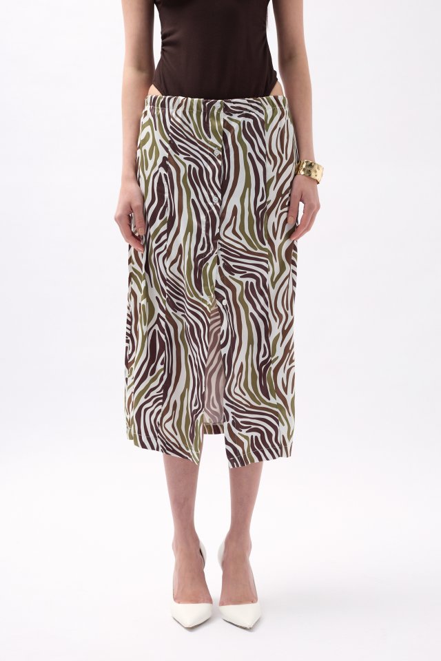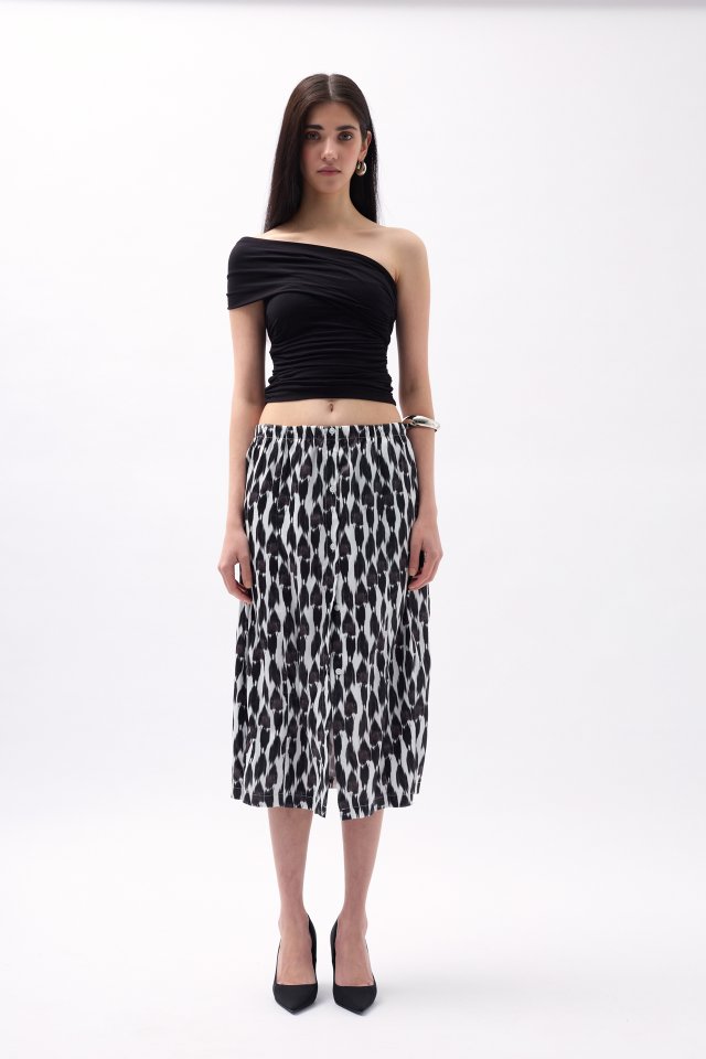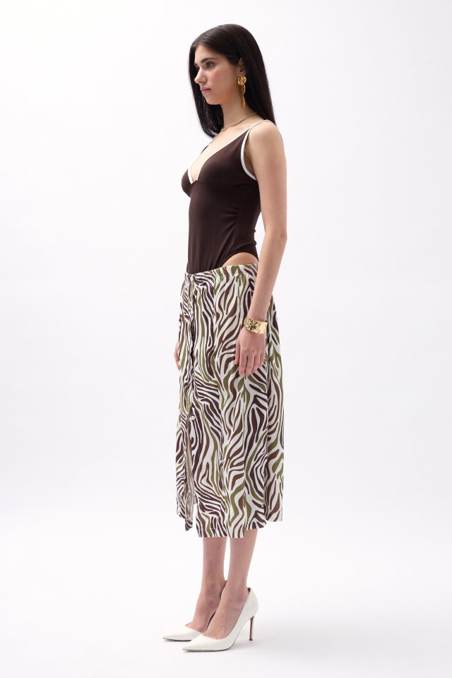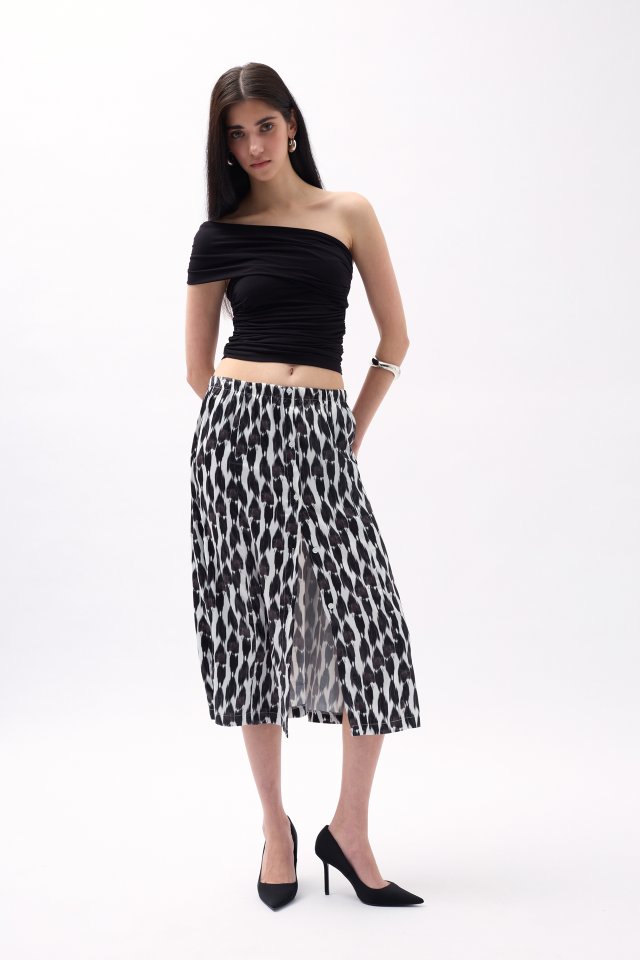 Yanı Yırtmaçlı Desenli Etek