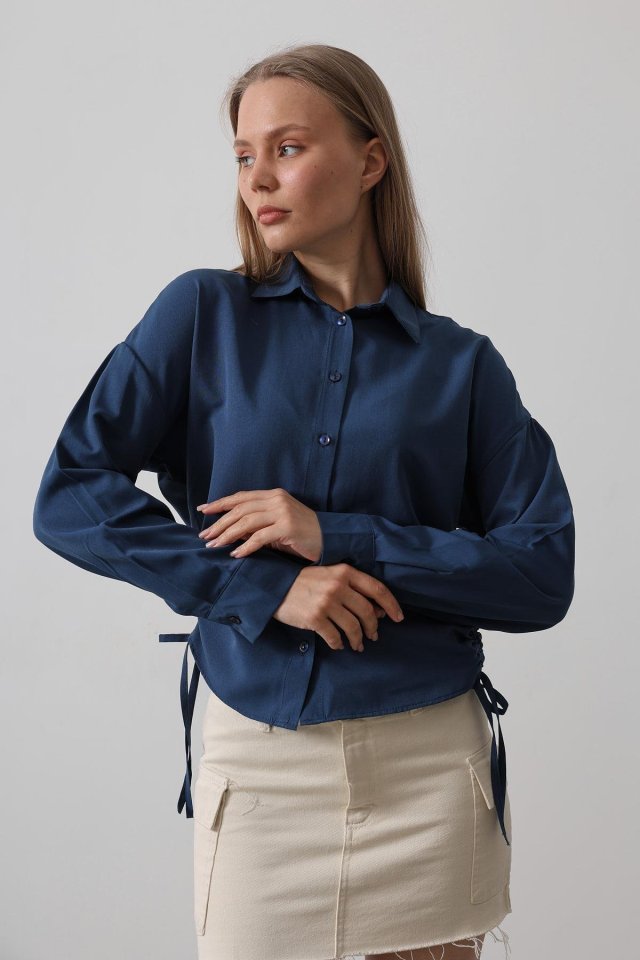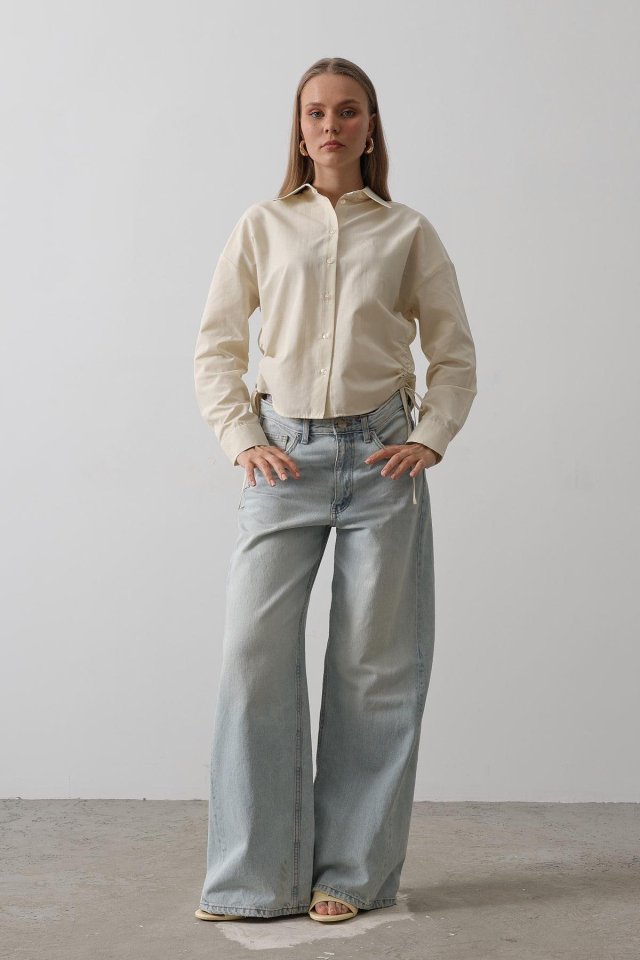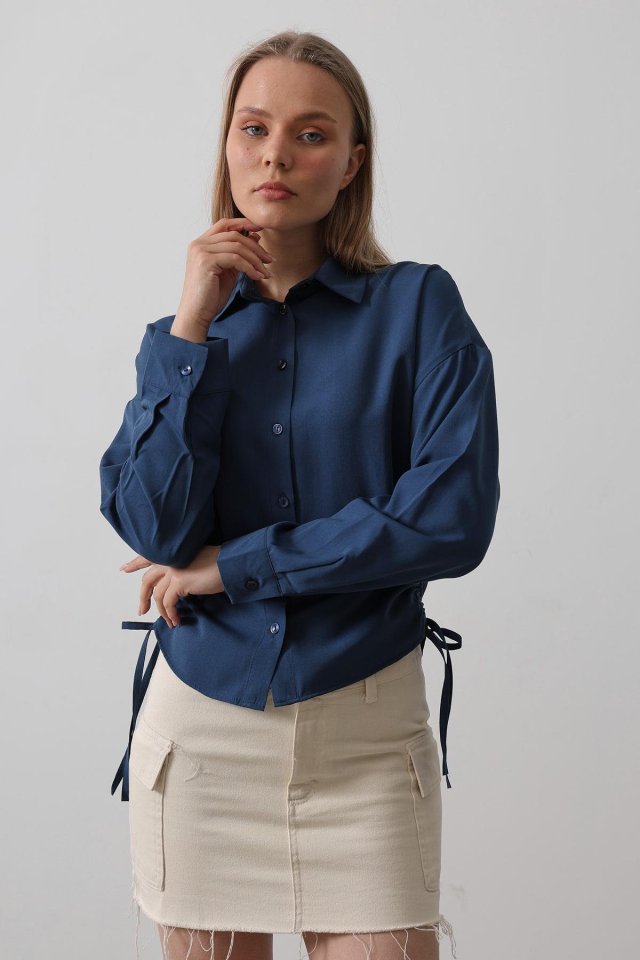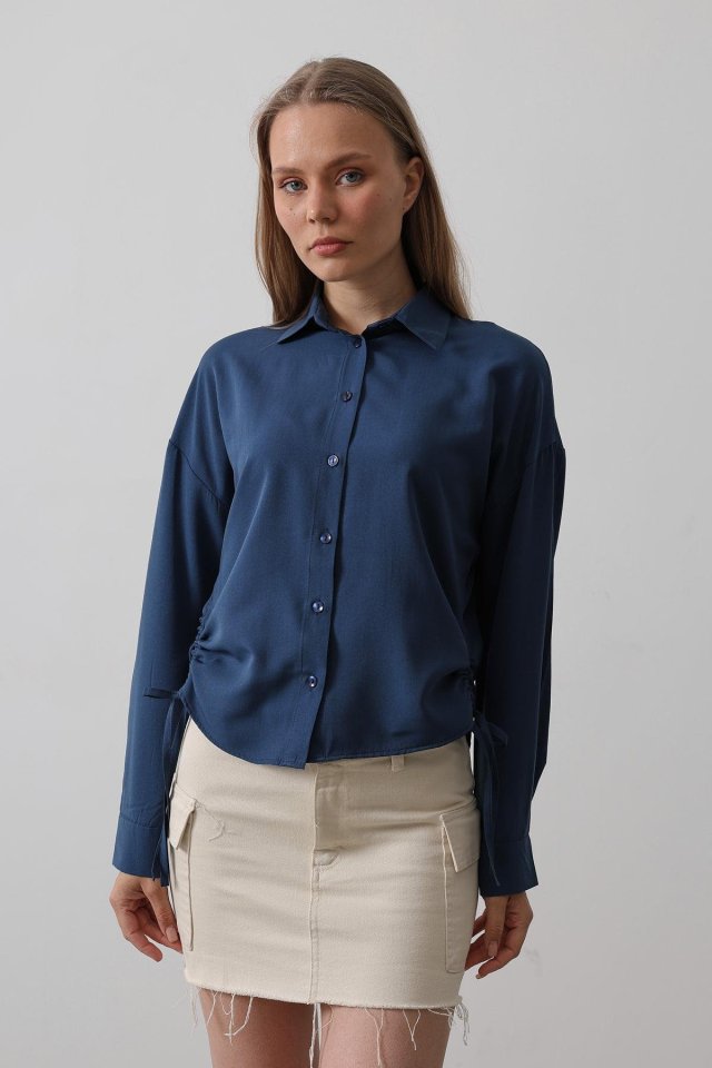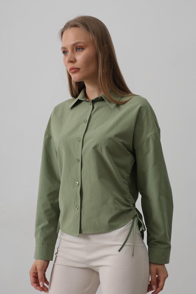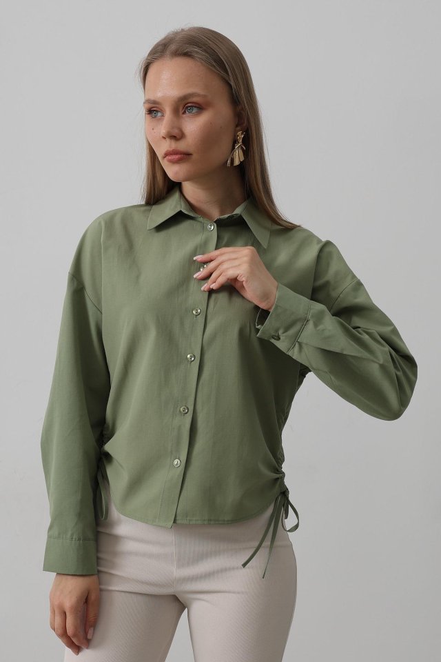 Yanları Bağlamalı Basic Gömlek - Haki