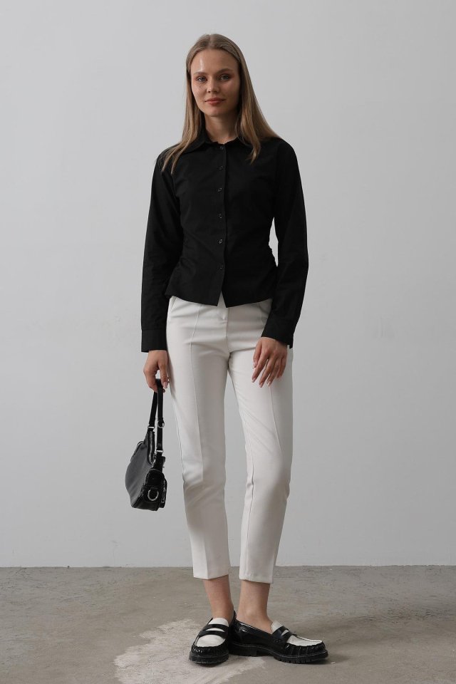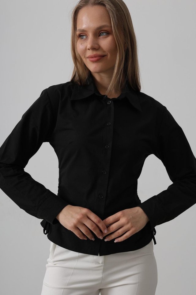 Yanları Büzgülü Çizgili Gömlek - Siyah