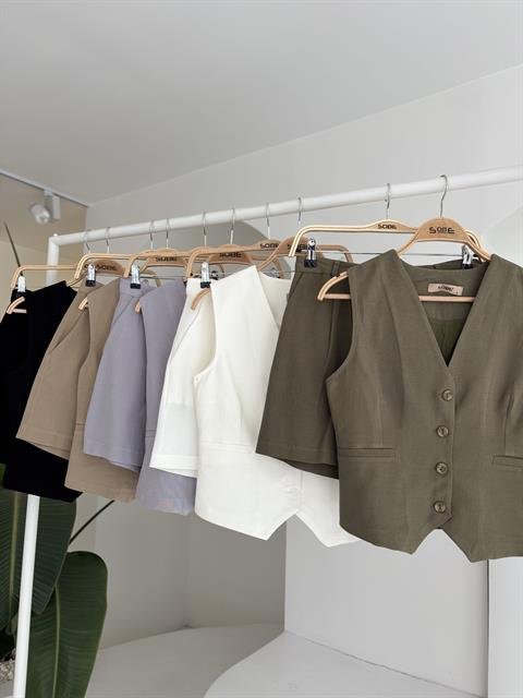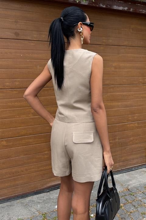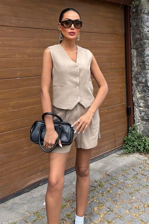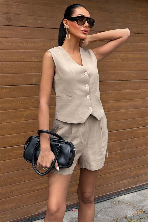 Yelek Şort Flamlı Keten Takım 10133-17