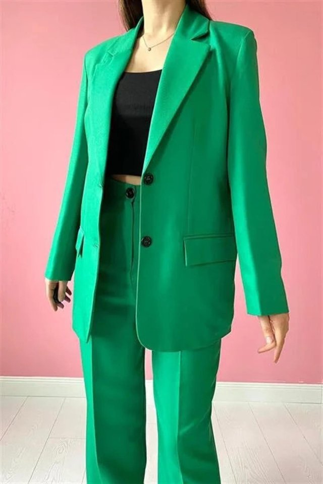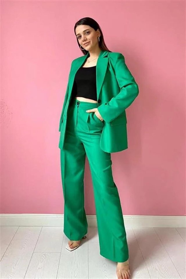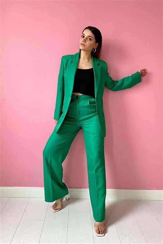 Yeşil Çift Düğmeli Ceket Ve Pantolon Takım