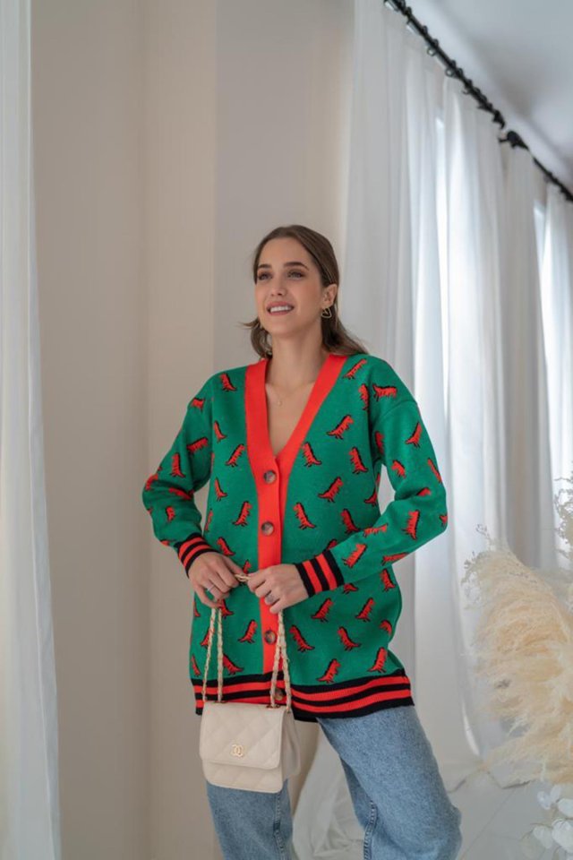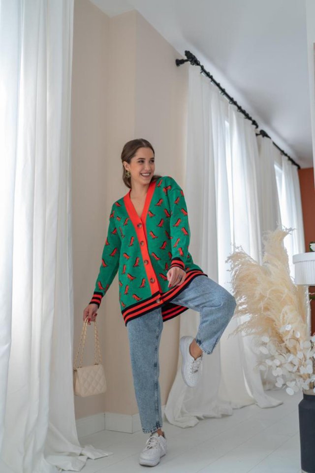 Yeşil Desenli Hırka