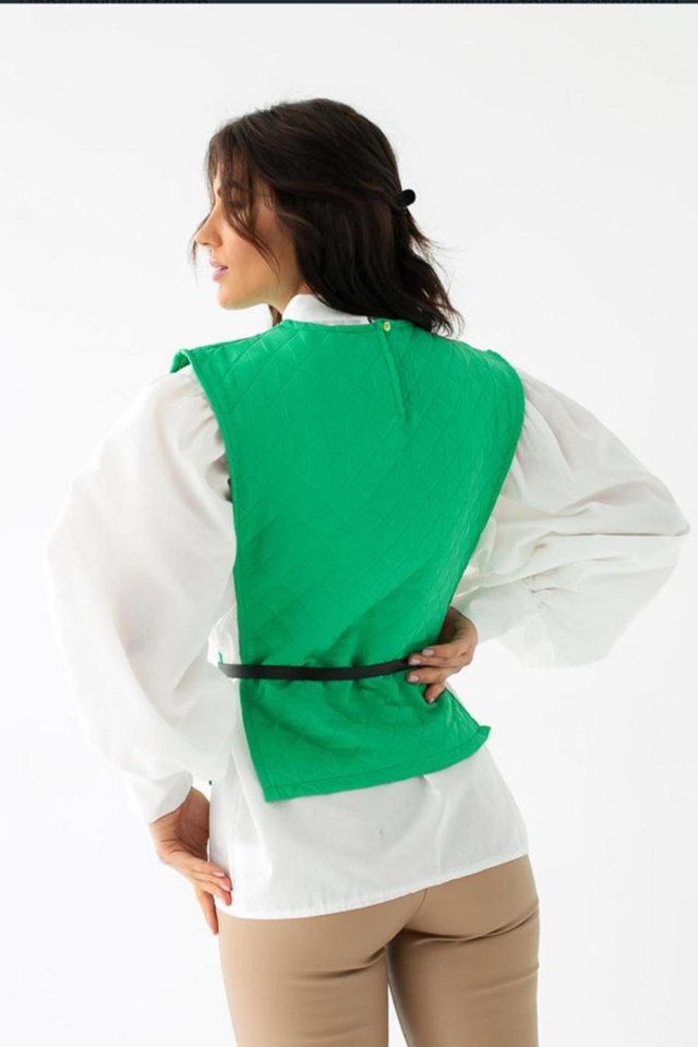 Yeşil Kemerli Gömlek Ve Panço Takım