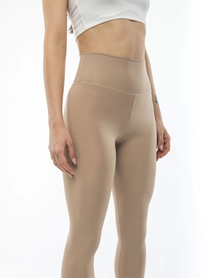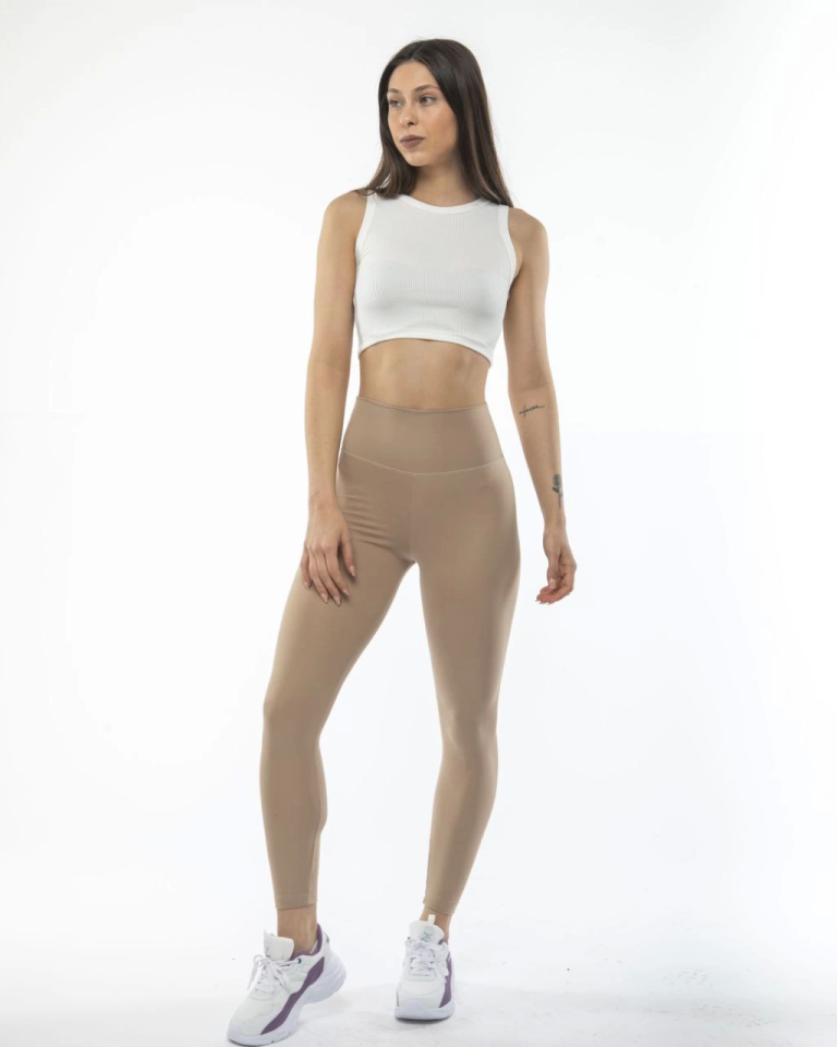 Yüksek Bel Sporcu Düz Tayt - Bej