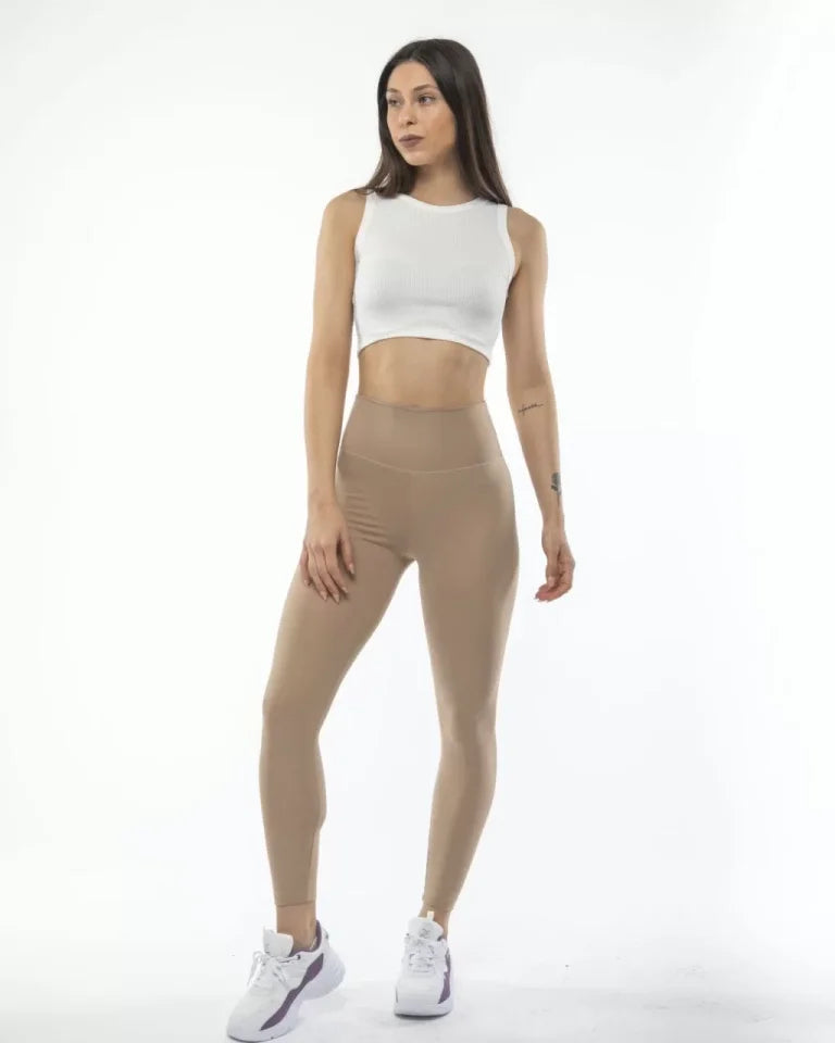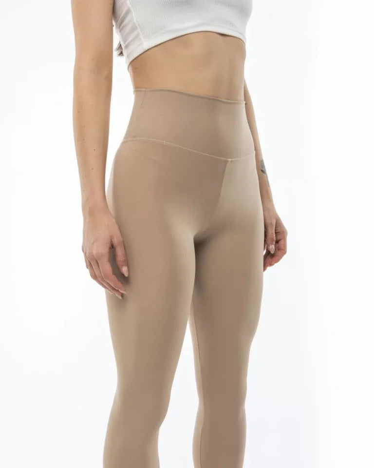 Yüksek Bel Sporcu Düz Tayt - Bej