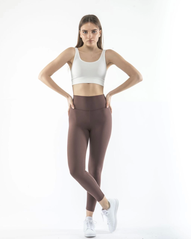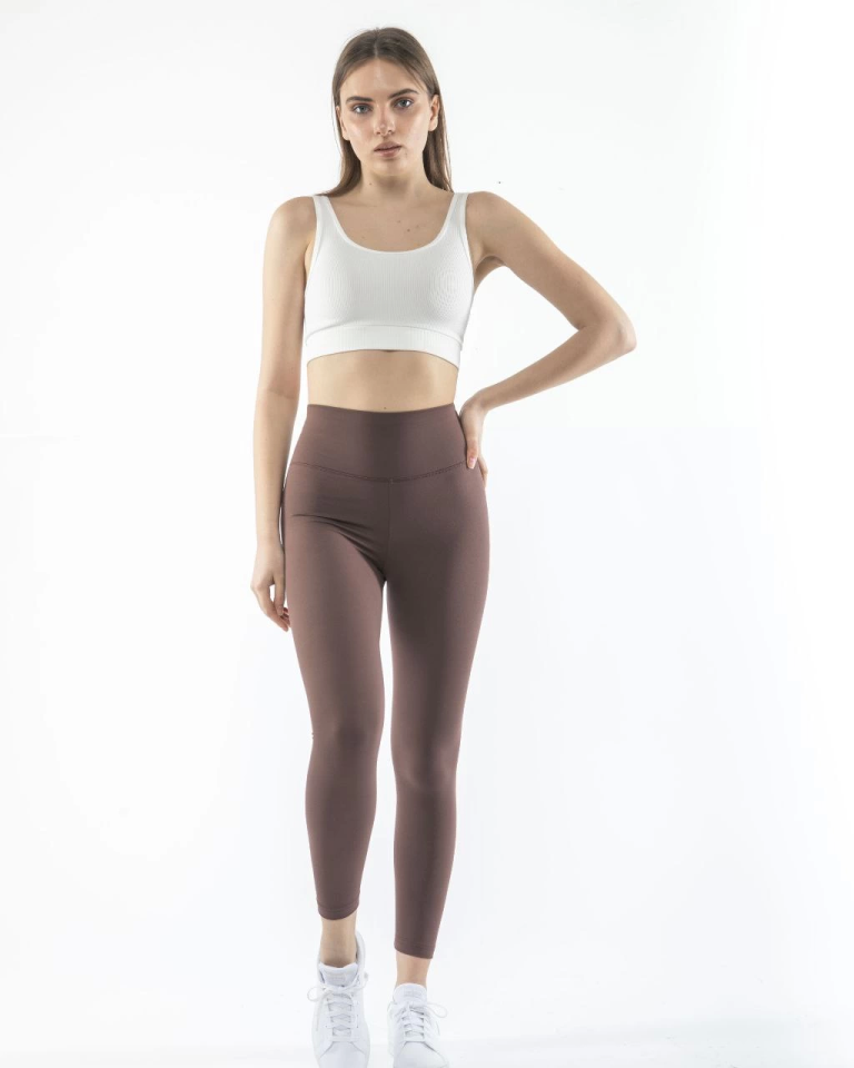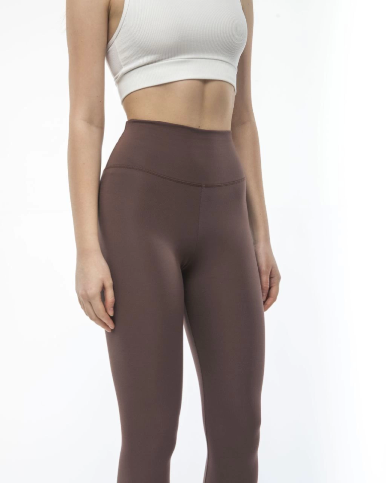 Yüksek Bel Sporcu Düz Tayt - Kahverengi
